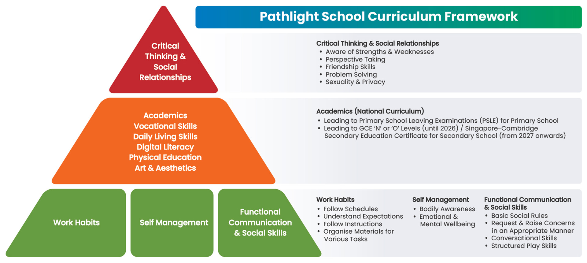 - Follows MOE national curriculum (except NO Mother Tongue Language), leading to PSLE qualifications.